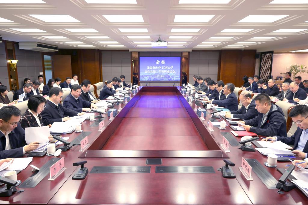 赵建军充分肯定近年来深化市校合作共建取得的新进展新成效,并指出江南大学是无锡的一张城市名片,也是“家门口的富矿”。当前,无锡正全面落实“打头阵、勇争先、走在前、作示范”重大要求,全力推动科技创新和产业创新深度融合,迫切需要以江南大学为代表的高校院所鼎力支持、深度参与。希望双方继续聚焦提高市校对接精准率、创新资源溢出率、科技成果转化率、毕业学生留锡率“四率”,力促市校合作共建取得更多务实成果。一是提升市校融合标志性,发挥江南大学基础研究主力军和重大科技突破策源地作用,依托无锡高质量发展走在前列特别是产业基础优势,协力扩大名城名校互促互进的贡献度和显示度,支持学校加强基础学科、新兴学科、交叉学科和高水平医学院建设;二是提升创新合作精准性,大力支持学校与多方加强合作,围绕食品、轻工、集成电路等领域攻克关键共性技术,与重点企业共建实验室和创新联合体,积极主导或参与概念验证中心和中试服务平台等建设,面向各板块产业布局优化学科设置,找准与市产研院互利共赢的切入点,切实把学校打造成山水东路科创谷的核心担当和引领示范;三是提升在地发展根植性,学校侧持续放大技术、人才、公司溢出效应,扩大卓越工程师培养规模,提高毕业生留锡率,推动更多校友企业、创业项目落地无锡,政府侧不断增强城市宜居度、吸引力,组织更多本地企业招聘进校园、送岗位,升级完善创业支持政策和政府服务,让想创业、在创业的江大学子都能在无锡施展抱负;四是提升服务保障支撑性,市级层面继续给政策、给资金、给资源,专班层面更加主动、更高频率、更为务实对接学校,部门层面突出需求导向、细化操作,倾力支持江南大学建设一流大学,携手实现争先进位、共同挑大梁。