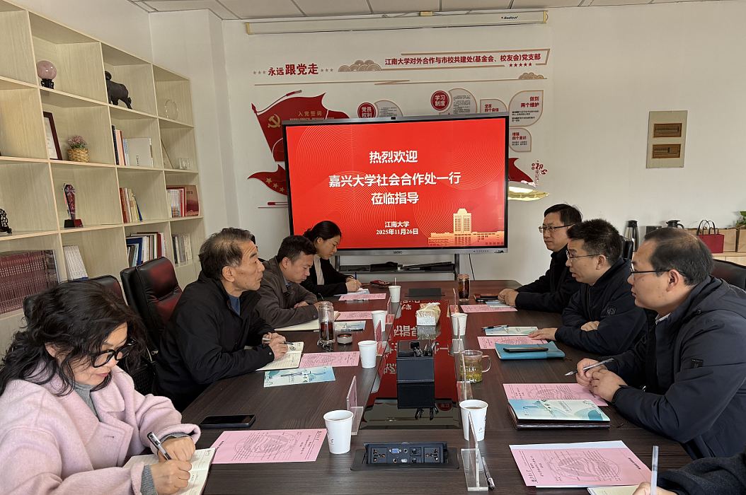 11月26日上午,嘉兴大学社会合作处处长丁玉泉一行来校交流。校对外合作与市校共建处处长黄敏等接待来宾。
