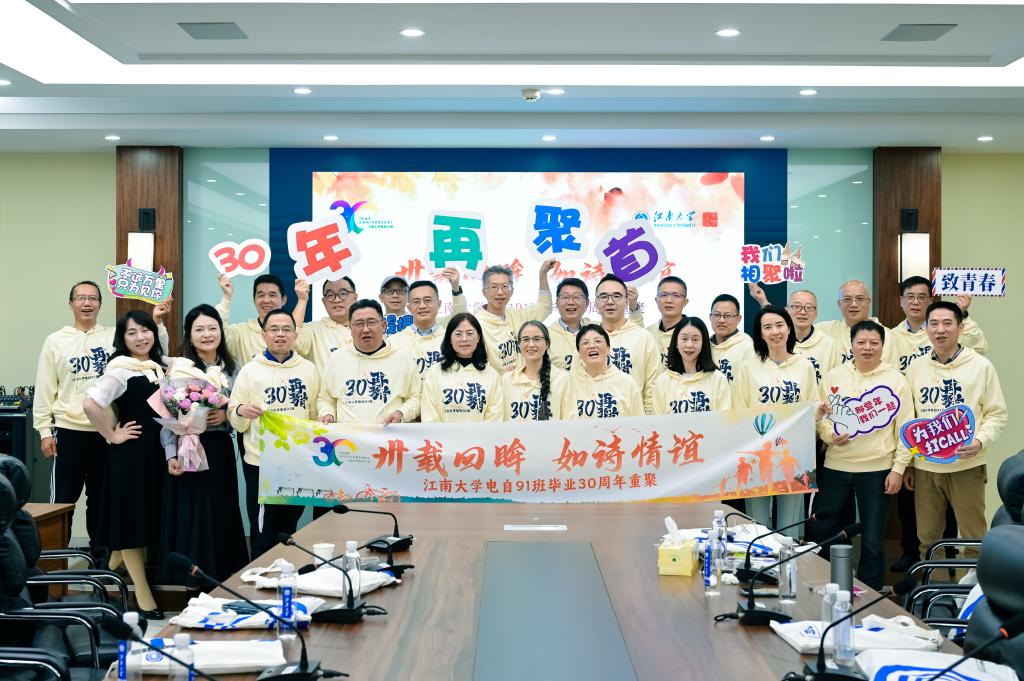 “卅载回眸,如诗情谊”。2025年11月7日,江南大学物联网工程学院喜迎全国各地的电气自动化911班校友返校,学院党委书记张华、办公室主任付少平热情接待了校友并出席班级毕业30周年班会。