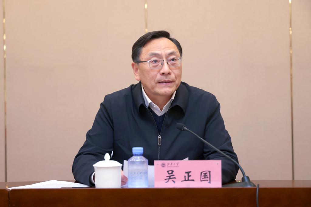 校党委书记吴正国受教育部党组委托,宣布任职决定。根据《教育部关于金科任职的通知》,任命金科为江南大学副校长。吴正国代表学校党委和全体师生员工对教育部关于学校副校长的任职决定表示坚决拥护,对金科的到任表示热烈欢迎。他代表党委领导班子郑重表态,将把思想和行动统一到教育部党组的决定和部署上来,全力支持金科工作,切实发扬学校班子密切配合、精诚团结的优良传统,打造团结协作、坚强有力的领导集体,共同带领全体师生开创学校各项事业发展的新篇章。同时,他希望金科尽快融入集体,勇于担当作为,坚守初心使命,把在高等教育管理领域多年丰富的行政管理经验、深厚的专业理论素养带到学校,与其他班子成员一道,共同开创学校事业改革发展新局面。