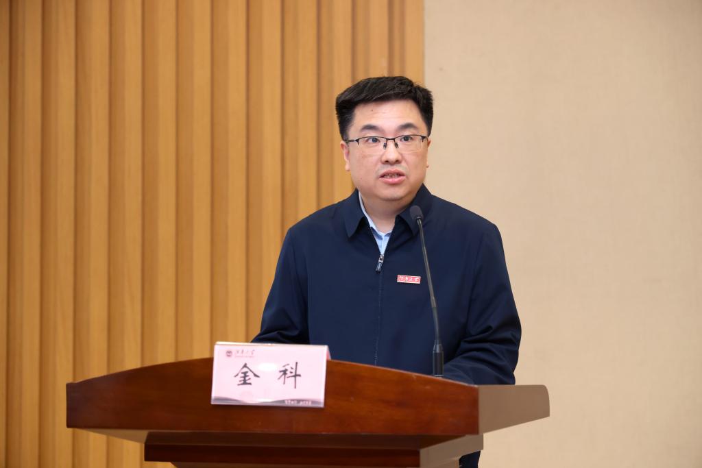 会上,金科作表态发言。他表示,从今天起正式成为“江南人”,他将秉承“笃学尚行、止于至善”的校训精神,尽快融入新角色,在新岗位上努力做到始终筑牢政治忠诚,把稳方向之舵;始终聚焦发展大局,砥砺担当作为;始终厚植为民情怀,凝聚磅礴伟力;始终严守纪律规矩,永葆清正廉洁,在学校党委的坚强领导下,为学校高质量发展贡献自己的全部力量。