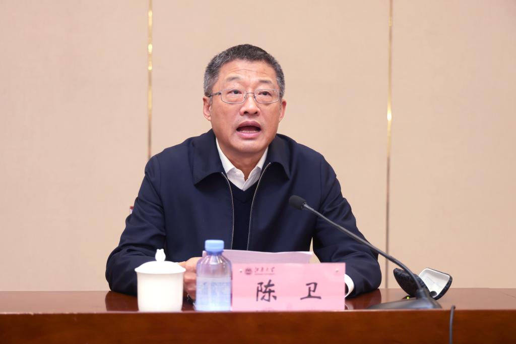 11月14日下午,江南大学在图书馆三楼报告厅召开干部教师大会,宣布教育部关于江南大学副校长的任职决定。校党委副书记、校长陈卫主持会议。