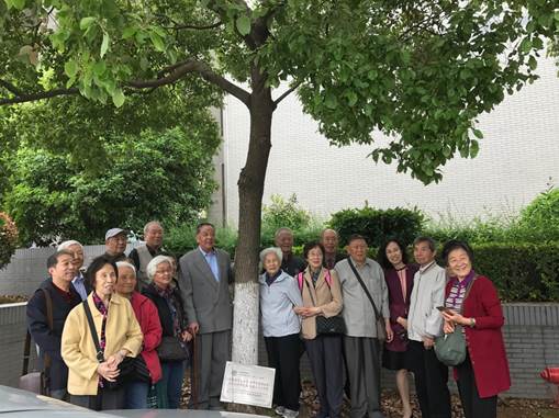 吃完午饭,校友们迫不及待地前往五年前认植树的地点,大家纷纷合影拍照,给树浇浇水,擦擦认领牌,仿佛看着自己的孩子一样长大,这棵树代替他们见证着母校的成长。
